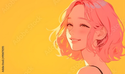 anime style, Happy pink-haired, stylish young woman, Generative AI