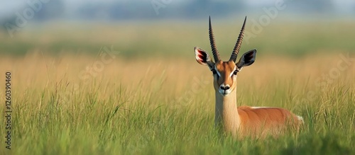 Antelope in Lush Green Grassland with Empty Copy Space Ideal for Nature-Focused Text or Advertising Layouts