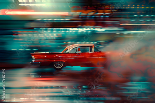 Antique retro vintage car in blur art photography style, , ai generated, a blurred slow motion camera photo art