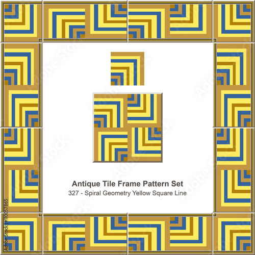 Antique tile frame pattern set_327 Spiral Geometry Yellow Square Line