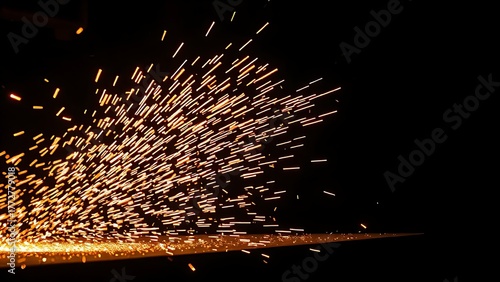anvil. Sparks fly in a dynamic industrial scene, highlighting the intensity of metalwork in motion. safety posters, maintenance manuals, designed for industrial assembly lines and welding operations.