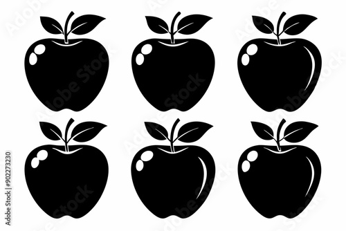 Apple fruit silhouettes set, Black apple icon collection isolated white background