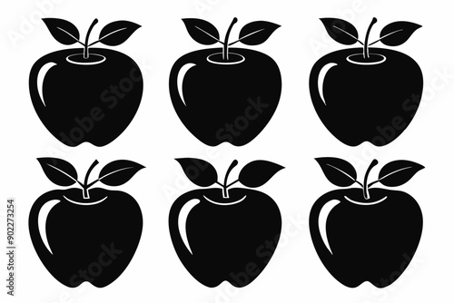 Apple fruit silhouettes set, Black apple icon collection isolated white background