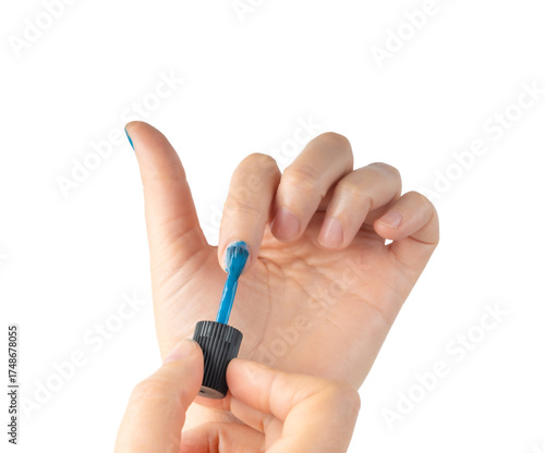 Applying nail polish in close-up. Getting manicures on your own at home
