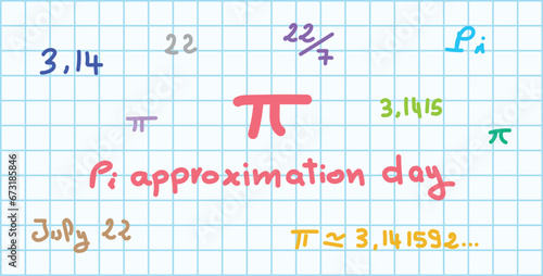 Approximate number of pi. Value of pi in mathematics. Happy international day of mathematics. Mathematical constant pi. Scientific resources for teachers and students. Vector illustration.