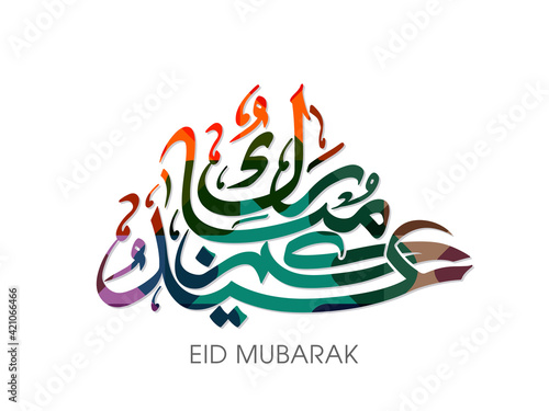 Arabic Calligraphic text of Eid Kum Mubarak for the Muslim community festival celebration.