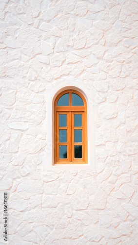 Arched Window in Textured White Stone Wall image photo