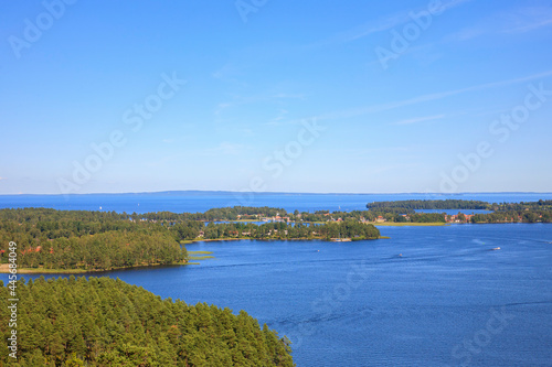 Archipelago with wooded islands in summer