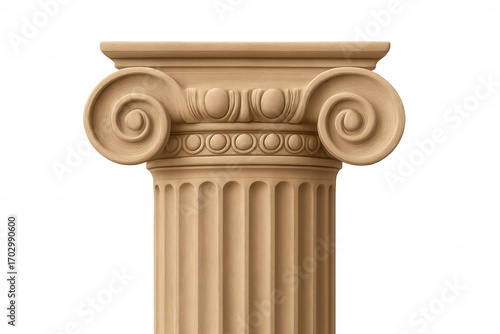 Architectural detail of an ionic column capital, featuring volutes and a transparent background, suitable for historical or design projects