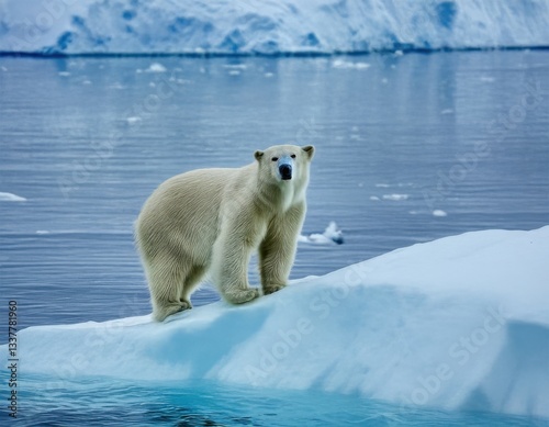Arctic bear's magnificent presence on edge of an iceberg. represents harsh environment