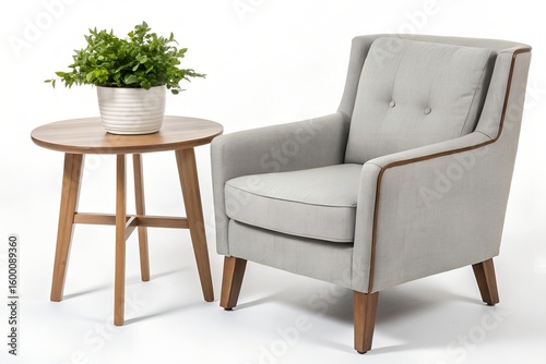 Armchair and plant create a cozy interior scene