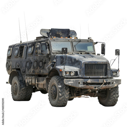 Armored military vehicle ready for action in a rugged environment for security needs
