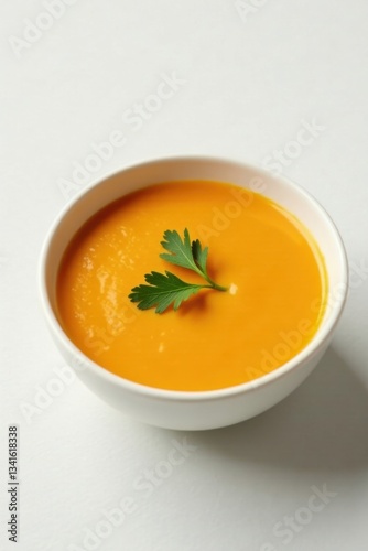 Aromatic Carrot Soup in a Simple White Bowl, Garnished with Fresh Herbs