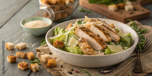 Aromatic Grilled Chicken Caesar Salad with Crispy Croutons and Parmesan