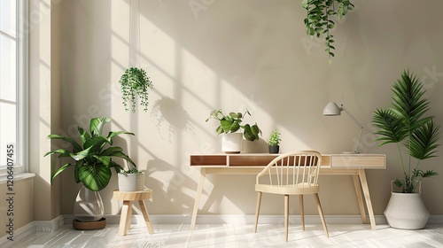 arrangement of front view workspace composition with plants