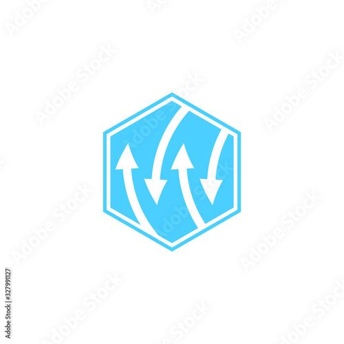 Arrow box with hexagon shape. Vector stock illustration