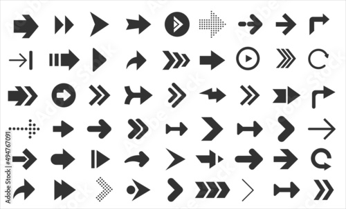 Arrows web collection on white. Modern graphic direction signs computer screen arrows