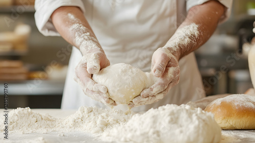 Artisan Baker Kneading Fresh Dough in a Floury Bakery Setting : Generative AI