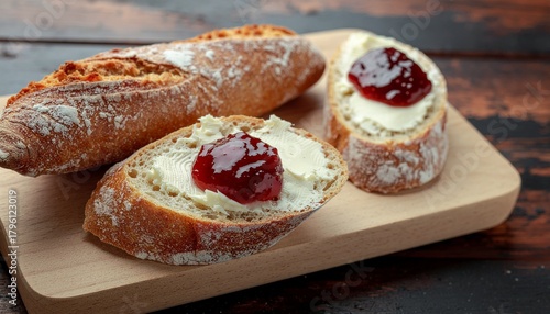 Artisan Bread with Jam on a Wooden Board Delightful Morning Treat