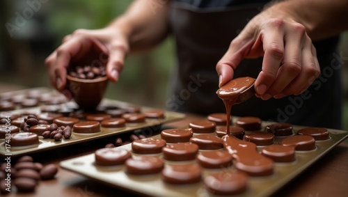 Artisan Chocolatier Pouring Melted Chocolate into Molds – Homemade Gourmet Confectionery
