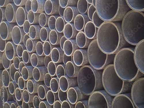 Asbestos cement pipes used for drainage construction. Texture for background.