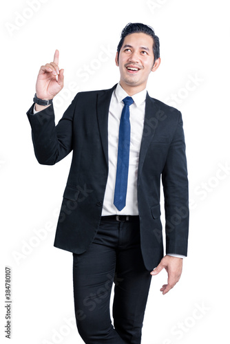Asian businessman pointing something