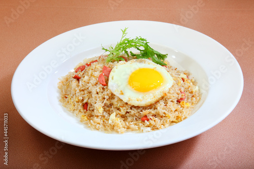 asian fried rice with egg, ham, crispy chicken and seafood in bake cheese western halal menu