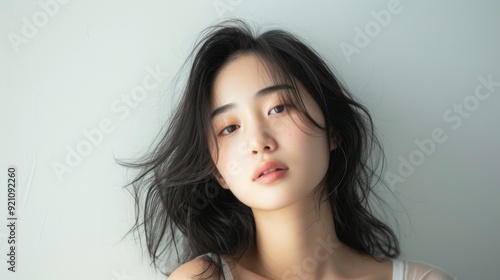 Asian model following her beauty routine