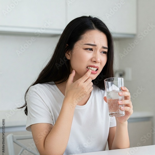 Asian Woman Struggling with Sensitive Teeth and Oral Discomfort While Drinking Cold Beverages