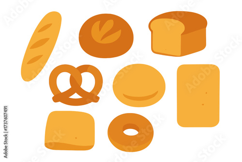 Assorted baked goods in flat design style