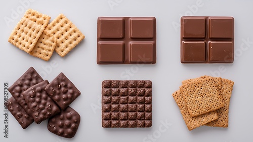 Assorted Chocolates and Crackers on Gray Background for Treats