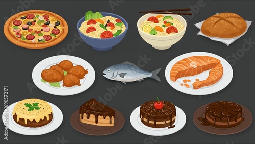 Assorted Delicious Food Dishes Illustration