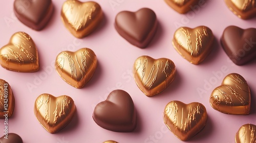 Assorted Heart-Shaped Chocolate Candies on Pink Background