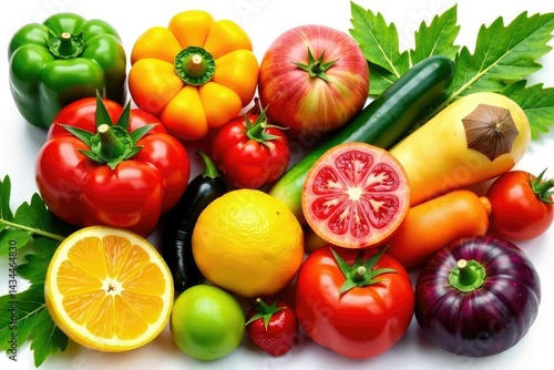 Assorted organic fruits & vegetables isolated, raw, fresh produce