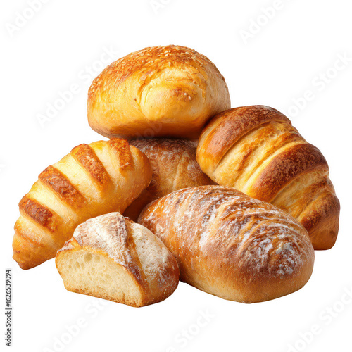 Assorted pastries, golden-brown, piled high