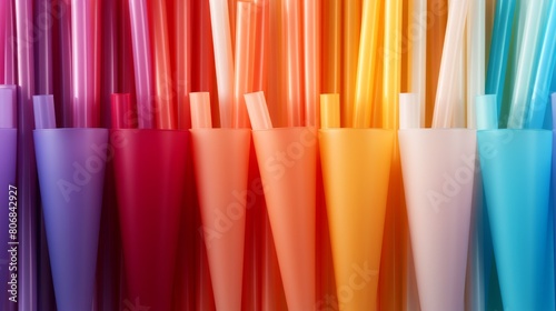 Assorted, vibrant colored straws lined up in a row