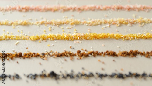 Assortment of Colorful Decorative Sand Lines for Crafts and Art Projects Displaying Different Shades and Textures