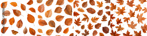 Assortment of Vibrant Autumn Leaves in Swirling Pattern Colorful fall foliage in shades of orange red and brown creating an background
