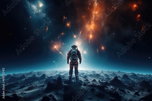 Astronaut exploring other worlds in outer space