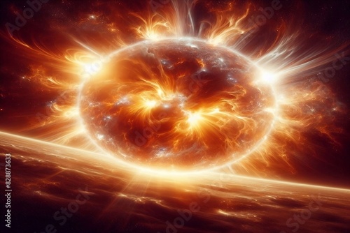 Astronomische Aufnahme eines feurigen Sonnensturm auf der Oberfläche der Sonne vom Weltraum aus betrachtet