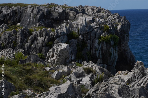 Asturias. Beautiful natural landscape beach rock cliffs. Guadamia,Spain