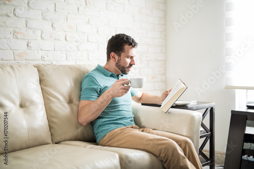 Attractive man reading his favorite novel