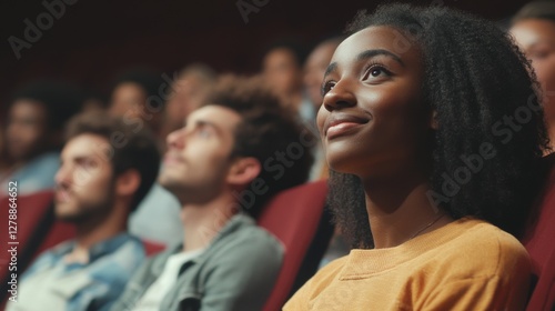Audience captivated by a performance in a theater, showcasing expressions of joy and engagement
