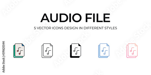Audio File Icon Design in Five style with Editable Stroke. Line, Solid, Flat Line, Duo Tone Color, and Color Gradient Line. Suitable for Web Page, Mobile App, UI, UX and GUI design.