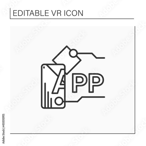 Augmented reality apps line icon. Integrates digital visual content into user real-world environment. Modern technology concept. Isolated vector illustration