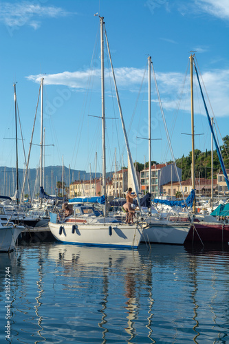 August 13, 2018, small fishermans and yacht haven, marina in Saint-Mandrier-sur-Mer, Provence, France