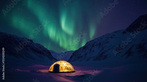 Aurora Borealis Illuminates Arctic Geodesic Dome Camp