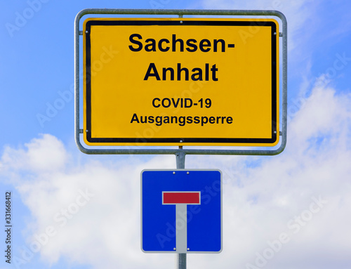 Ausgangssperre wegen Coronavirus steht auf Ortsschild