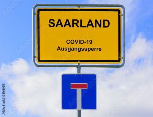 Ausgangssperre wegen Coronavirus steht auf Ortsschild