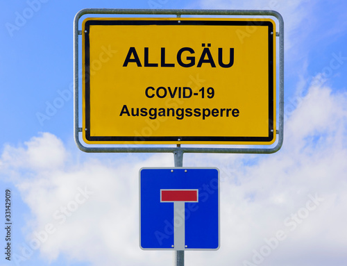 Ausgangssperre wegen Coronavirus steht auf Ortsschild fürs Allgäu